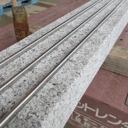 【敷居石】グレー系御影石G654にステンレスレールを取り付け発送